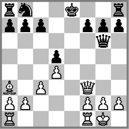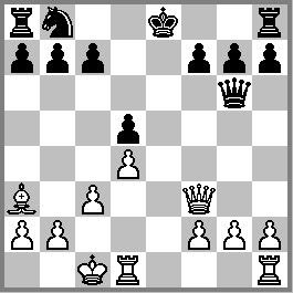 A dama preta dá xeque no rei branco, protegida pelo bispo.