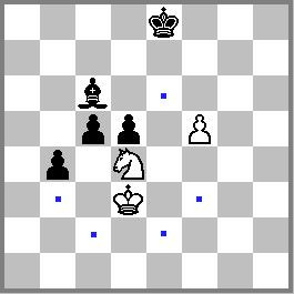 Assim, o cavalo branco pode capturar o bispo preto ou ocupar qualquer casa assinalada.